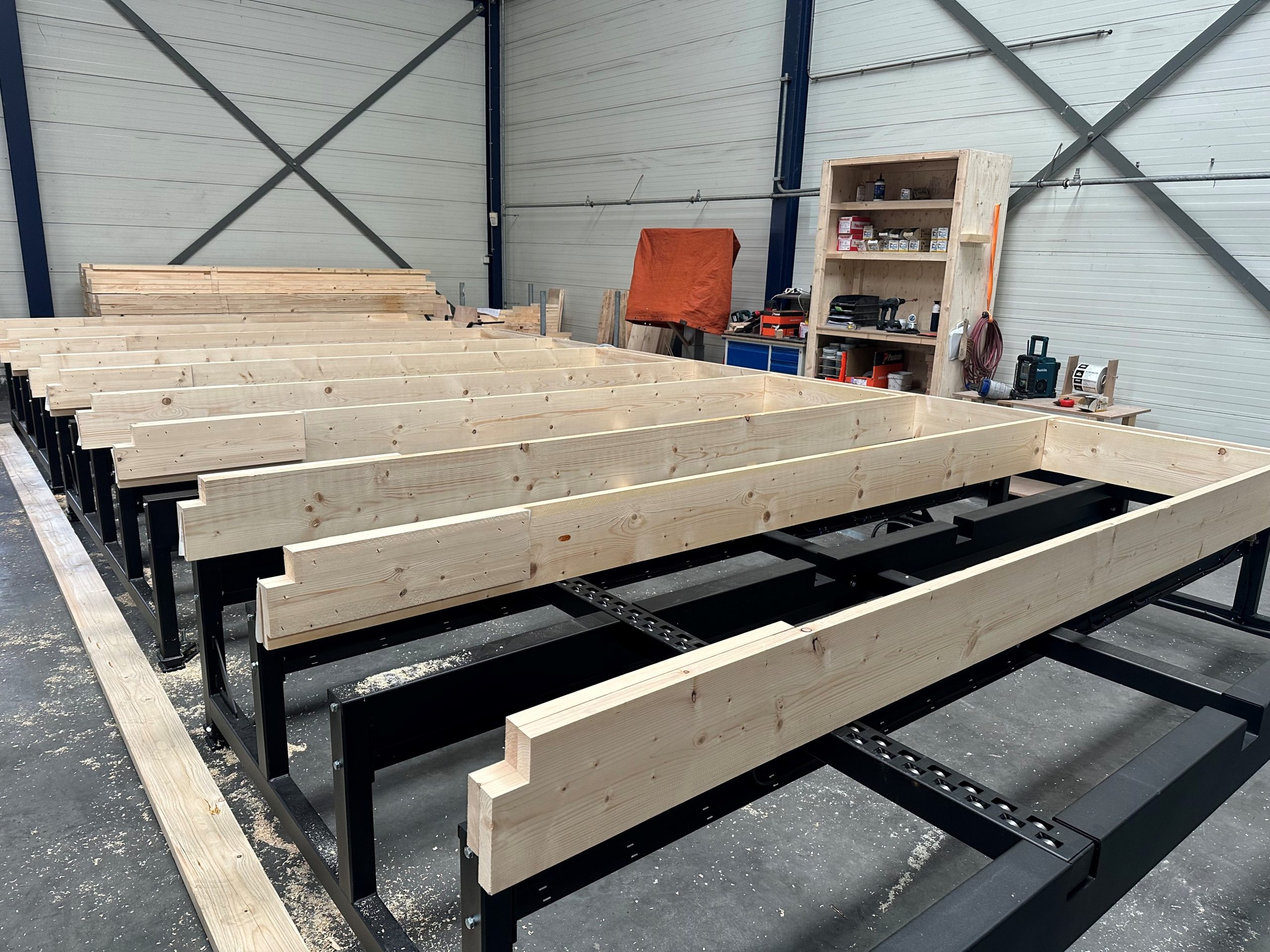 De HSB-elementen zijn volledig gemodelleerd in Tekla Structures. Met slimme instellingen kunnen onze werkvoorbereiders direct materiaalstaten in PDF- of Excelformaat genereren vanuit Trimble Connect. In het model verwerken we onder andere elementnummers, detailnummers, materiaalinformatie en – indien nodig – de montageplanning. Door gebruik van vooraf ingestelde filters kunnen collega’s eenvoudig en gericht informatie uit het model halen.