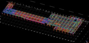 Konstrukcja wsporcza została zaprojektowana jako konstrukcja ramowa, podparta na podciągach stropu betonowego na poziomie ok. 8 metrów. Do konstrukcji został podwieszony tor EHB wraz z niezbędnymi zawieszkami oraz przejściami, podestami pod instalacje. Całość konstrukcji stalowej waży 1503 tony.