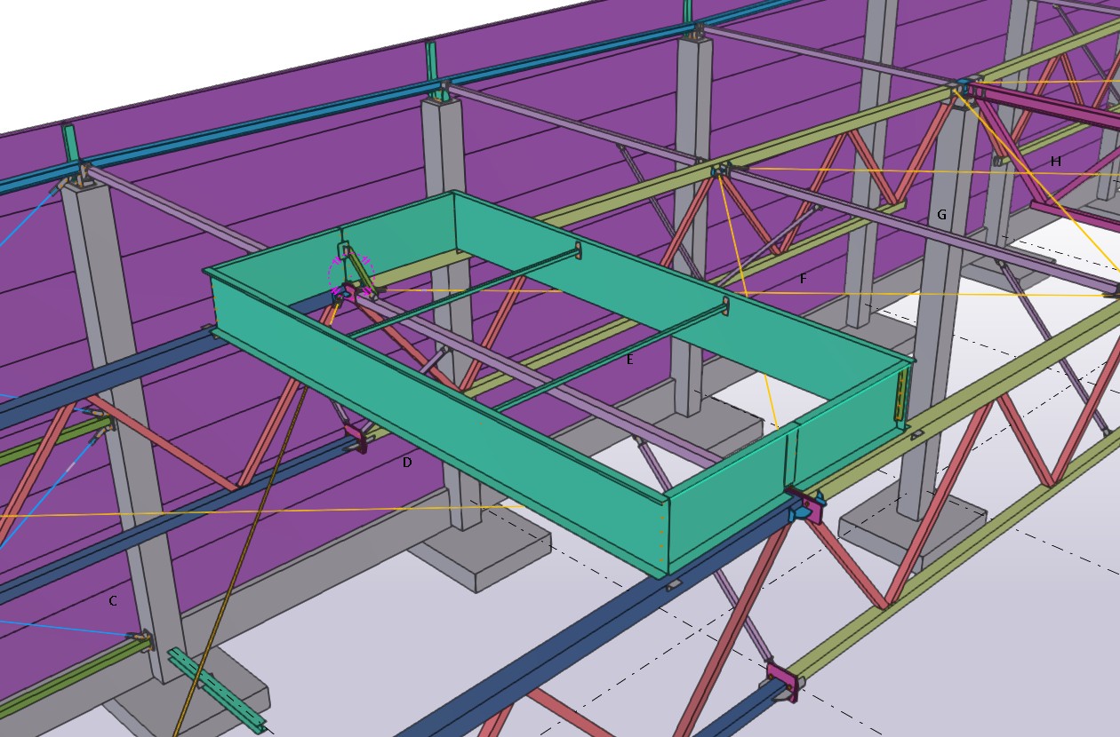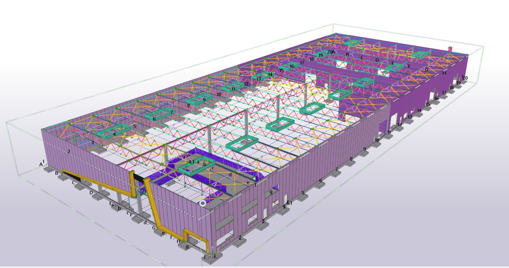 The exhibition and storage hall was designed using a reinforced concrete and steel structure. The main load-bearing columns are made of reinforced concrete, while the roof is supported by steel lattice trusses, ensuring stability and a modern architectural expression.