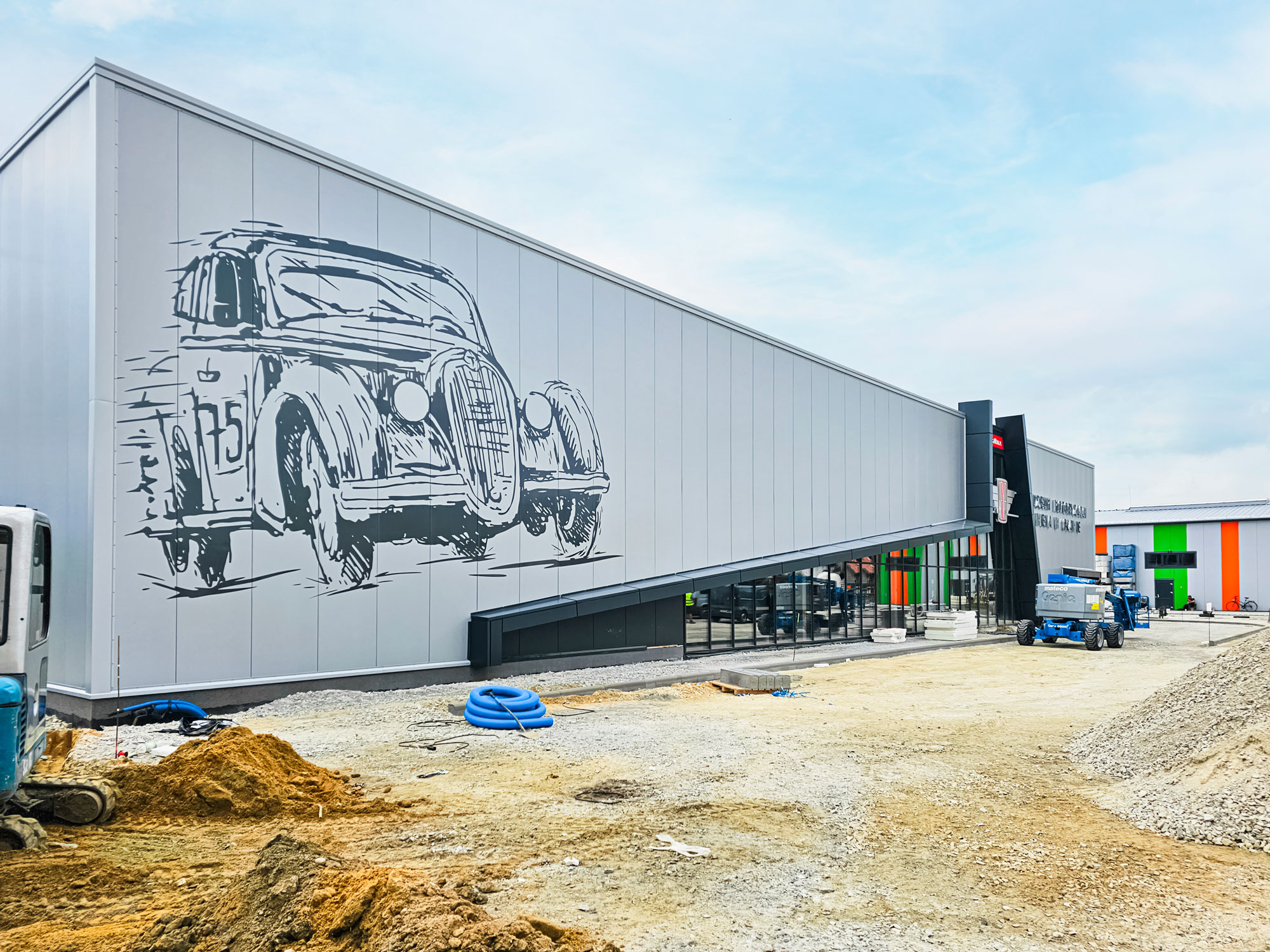 The exhibition hall project, commissioned by Studio Reklamy Wena — the owner of Poland’s only car-shaped office building — is a unique blend of functionality and automotive passion.