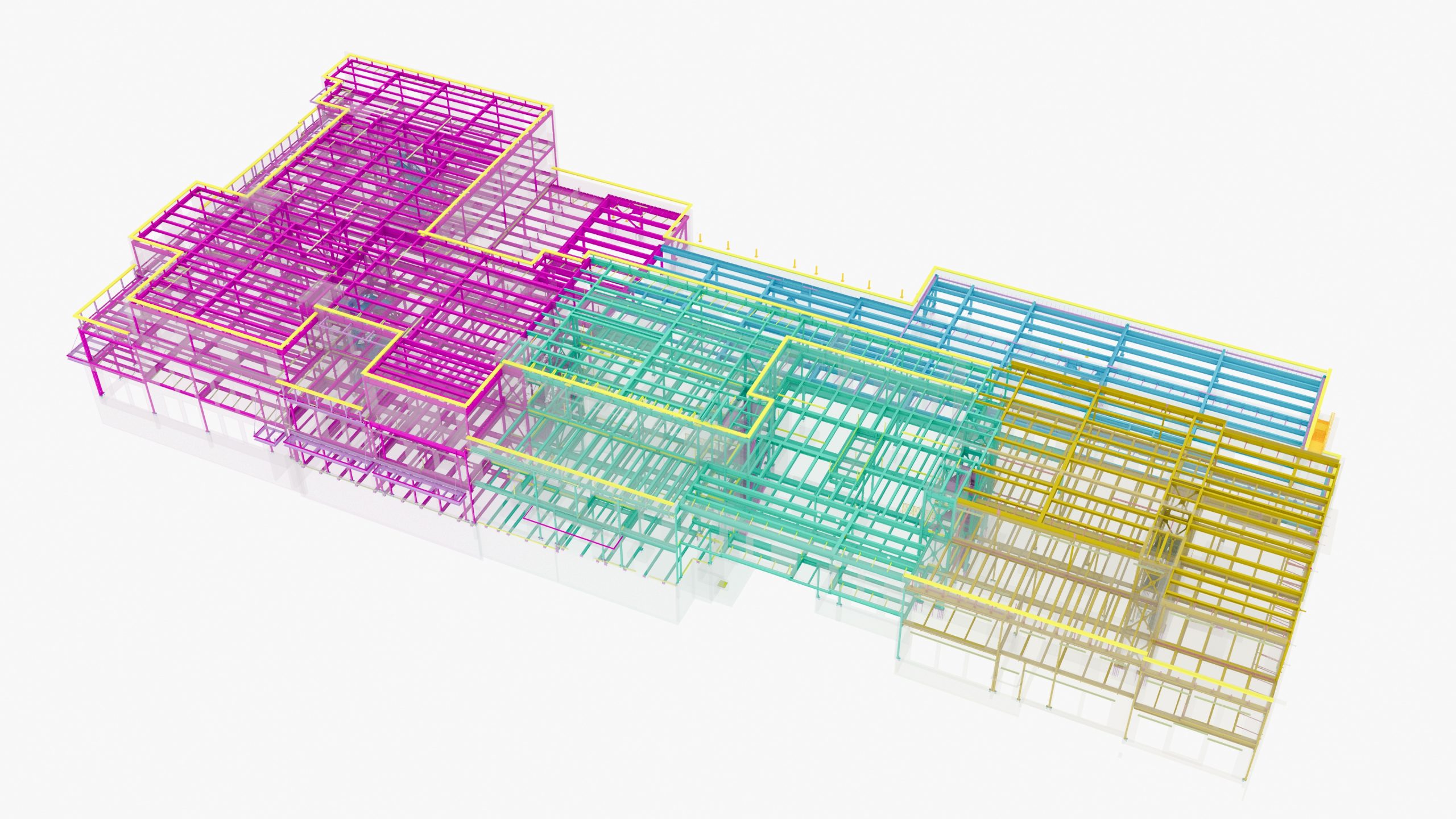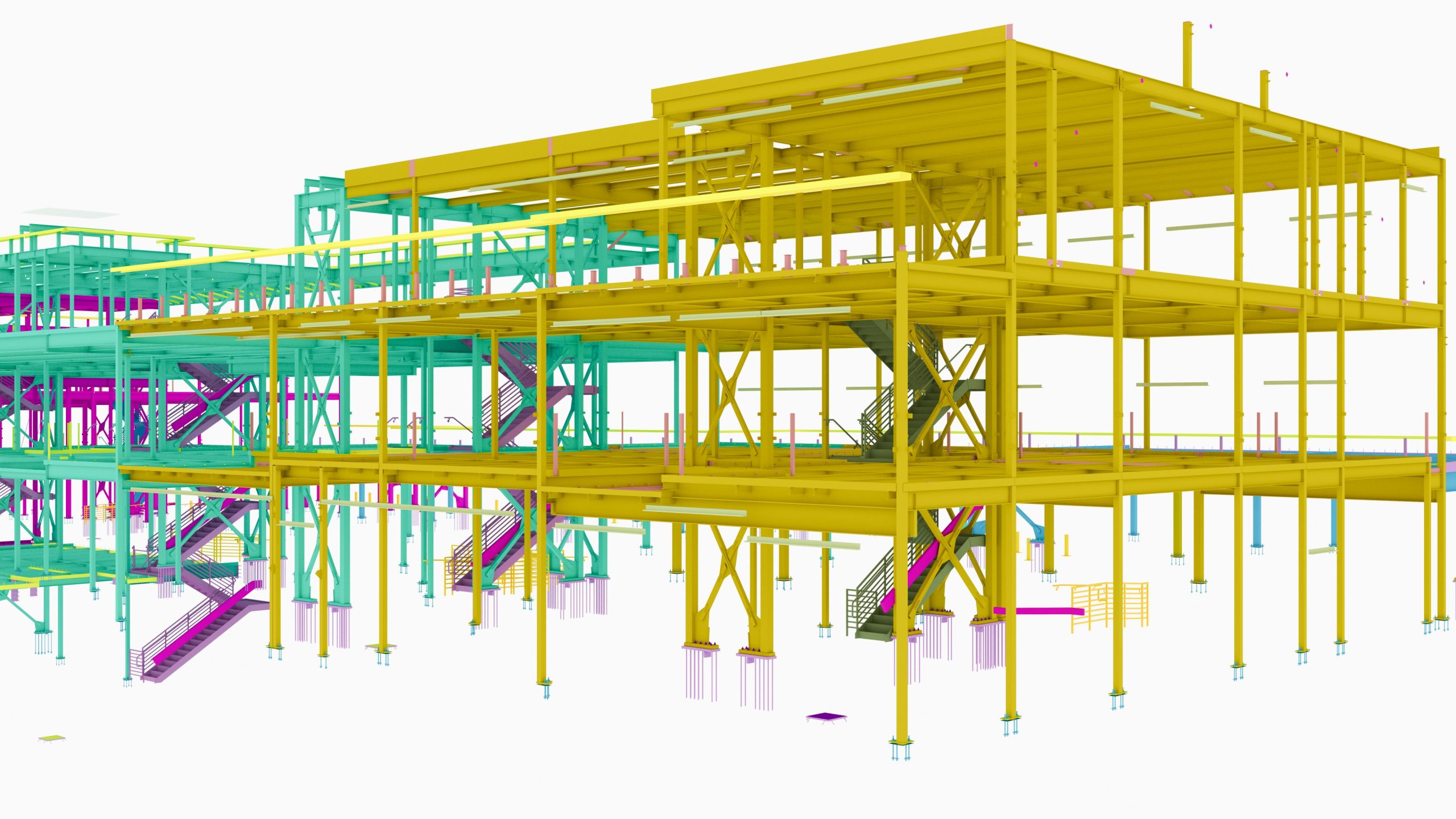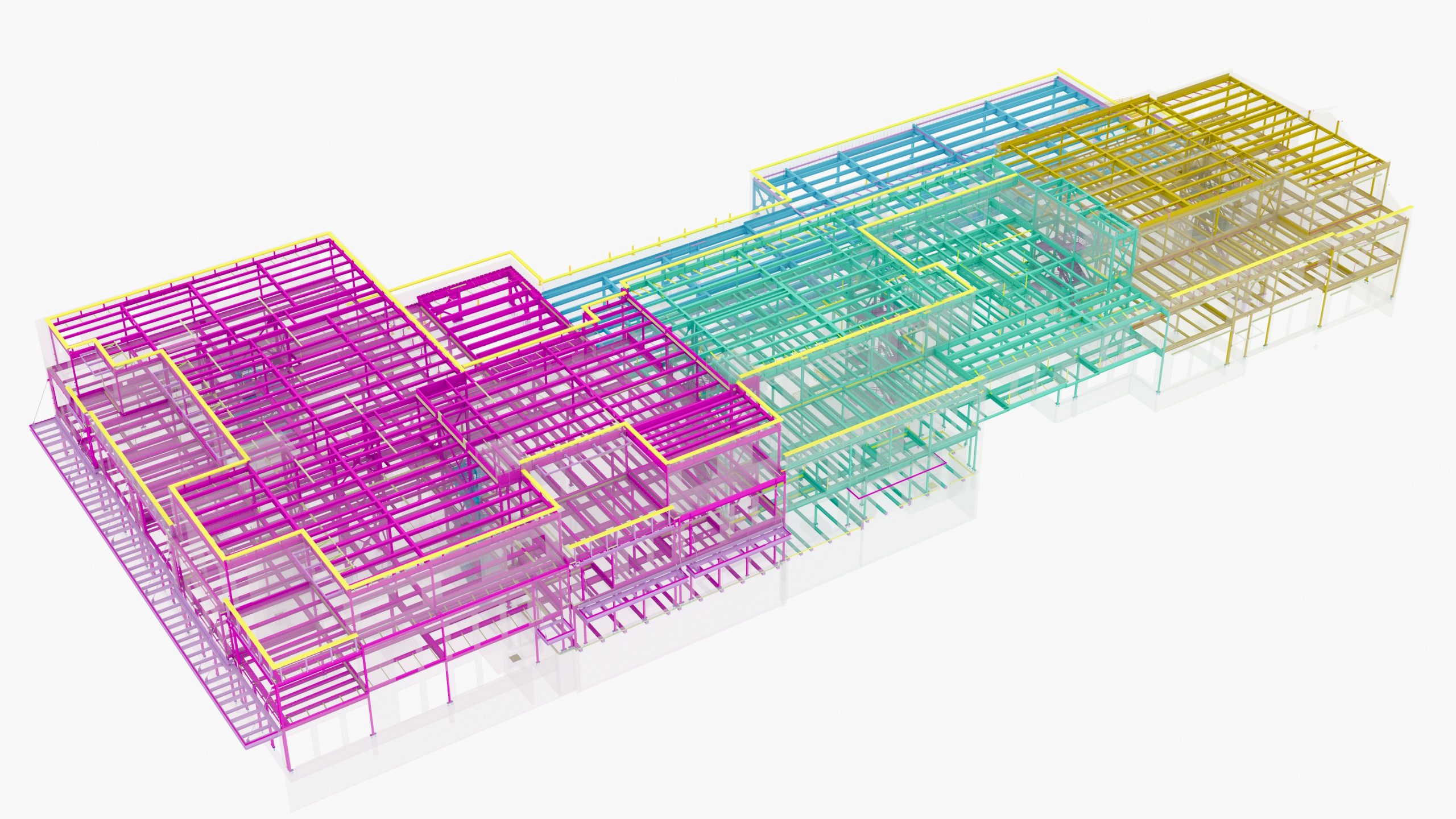 Projekt został w pełni zamodelowany i uszczegółowiony przy użyciu Tekla, a eksport modeli odegrał kluczową rolę w opracowaniu projektu we współpracy z inżynierami i architektem. Projekt stanowił szereg unikalnych wyzwań konstrukcyjnych, szczególnie ze względu na obecność podłóg o różnych wysokościach płyt. Jeden z bardziej złożonych aspektów obejmował detalowanie (6) stalowych wież schodowych, każda z podestami i balustradami schodowymi, a także schody z dwoma biegami z bramą. Z punktu widzenia detali, projekt obejmował kilka zaawansowanych i złożonych elementów konstrukcyjnych: