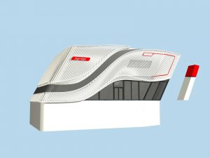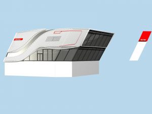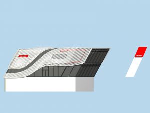 Jedná se o ocelovou konstrukci dvoupodlažního autosalonu v Praze – Ruzyni s opláštěním stěn z PUR panelů. Celá konstrukce je nakloněná v úhlu cca 30 st. od vertikály směrem k nejvíce exponovanému pohledu. Na stěnách jsou také velké zasklené výkladce.
