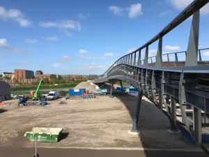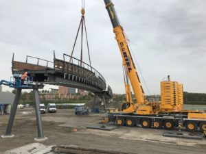 The bridge is finalized with a wooden walking deck and wooden parapet. These were engineered by vd Bersselaar and detailed by a wood supplier through model sharing. The outside of the bridge is finished with aluminium composite plates. The engineering for this has been outsourced and through BIM all auxiliary facilities have been included in the steel construction.