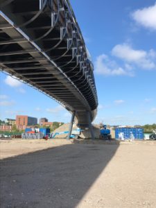 De hoofdconstructie van de brugdelen is een samengestelde constructie die bestaat uit in elkaar gelaste plaat- en walsliggers, met daartussen verbanden. Na fabricage van de delen worden deze geconserveerd en naar de bouwplaats getransporteerd. De pijlers zijn in elkaar gelaste portalen.