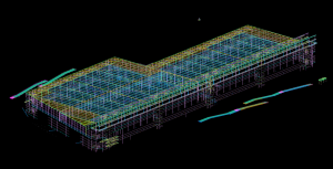 De grootste hoeveelheid staal (1.700 ton) is echter verwerkt in de drie warehouses. Onze 12 meter hoge staalconstructie is gebouwd op een betontafel van 12 meter, waarmee de totale hoogte van de warehouses uitkomt op 24 meter. De staalconstructie bestaat voornamelijk uit samengestelde vakwerkspanten met HEA boven- en onderregels en kokerschoren. In totaal monteerden wij circa 150 moerspanten van 12 meter en 325 kinderspanten van 23 meter, waarvan de grootste spanten een hoogte van 5,60 meter hebben. Om deze spanten vanuit onze fabriek in Esbeek naar de bouwlocatie te vervoeren, werd speciaal transport ingezet. Uiteraard werd alles uitgewerkt in een BIM-model, het mooie hiervan is dat we van verschillende partijen 3D info krijgen die we kunnen implementeren in ons staalmodel. We kunnen op deze manier echt alles real live zien in het model. Dat maakt het modelleren een stuk makkelijker.