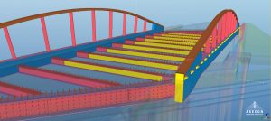 The BIM model of the viaduct was prepared as part of the detailed design for the extension of the National Road no. 46 in Dąbrowa along with the demolition of the existing and construction of a new viaduct in km 95+294, located over the railway line no. 132.