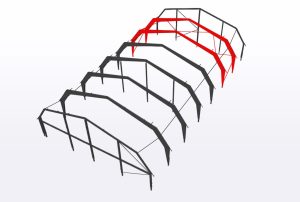 The characteristic feature of the building is the mansard roof, which gives the simple structure its character. It consists of eight frames – six two-hinged repeatable frames and braced frames. Gable frames were made of hot-rolled profiles. Main frames are made of welded sections.