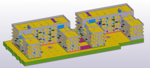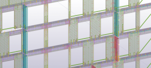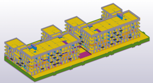 Przesłany przez nas model stanowi I etap kompleksu budynków mieszkalnych w Łodzi o nazwie Tuwima Gardens. Model ten składa się z 2 budynków w kształcie litery C oraz garażu podziemnego łączącego dwa budynki. Z wyjątkiem płyty fundamentowej o wymiarach 110m x 46,6m i ścian fundamentowych cała konstrukcja została zamodelowana w Tekli jako konstrukcja prefabrykowana i monolityczna.