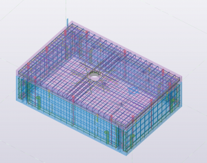 The model we have sent is the first stage of a residential complex in Lodz. This model consists of 2 buildings in shape of C letter and an underground garage connecting these two buildings. Except of 110m x 46,6m foundation slab and foundation walls the entire structure was modeled in Tekla as a prefabricated and monolithic structure.