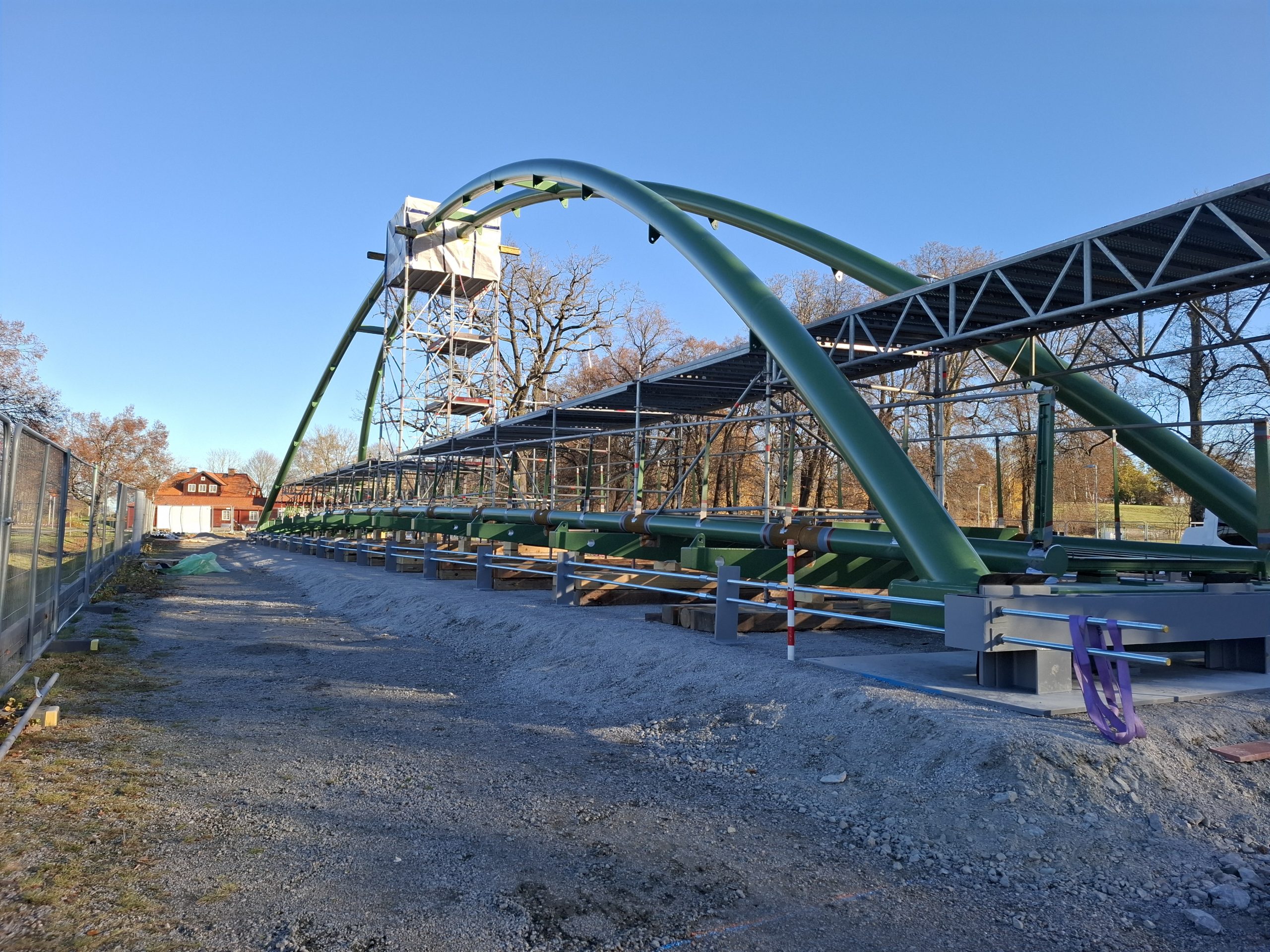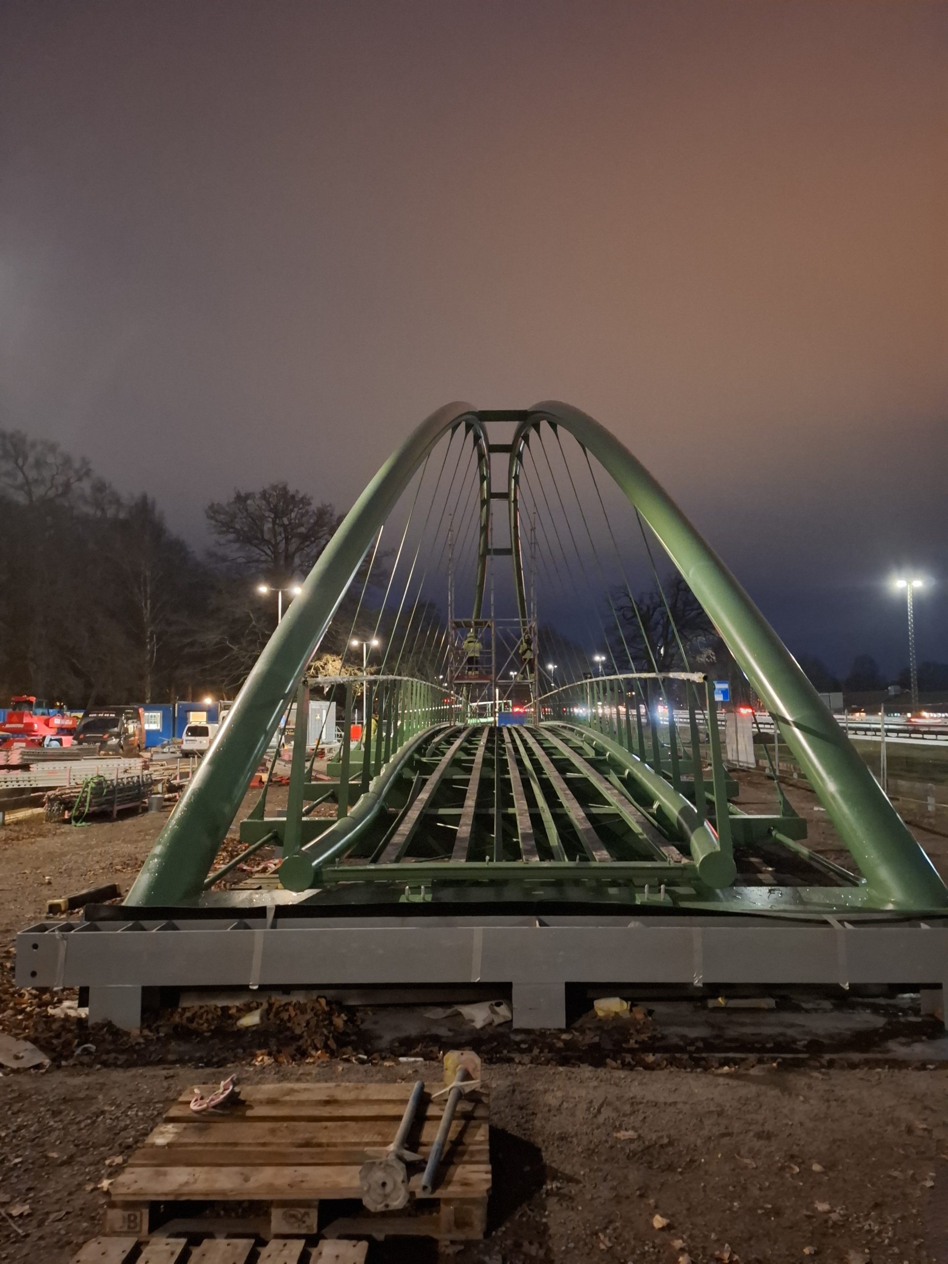The two main arches of the bridge and a stringer consisting of several parts were welded on site.