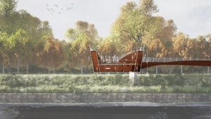 The main starting point for the bicycle and pedestrian bridge is that the design strives for a sober, harmonious bridge that does not impose itself at this location, but just becomes one with the existing rows of trees and the open characteristic of the Leie landscape. The bridge must, as it were, disappear into the landscape, without obstructing the view by protruding, visually dominant supporting elements. The relationship between the two banks should be strengthened by the curved and slender bridge structure that visually radiates a calm and natural image.