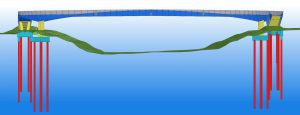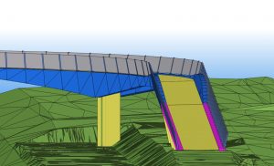 De bestaande toestand, het tracé van de brug én het 3D alignement is getekend in Civil 3D. Deze data is gebruikt in Rhino 6 en Grasshopper om hierrond de andere geometrie op te bouwen. Deze geometrie en data is hierna gebruikt in het rekenmodel in SOFiSTiK, maar ook in Tekla om de stalen brug, de volledige wapening, paalfundering en bekisting te genereren. Door te werken met 1 centraal model kunnen er heel snel aanpassingen gebeuren in het ontwerp.