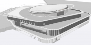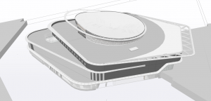 Het ruim opgezette gebouw telt 3 bouwlagen met naast de speelvloerfunctie ook kantoren, magazijnen en parkeerfaciliteiten. Vanuit het centrum ontvouwt zich een houten boomstam die bovendaks uitwaaiert als een bloem en volledig geïntegreerd is met de staalconstructie.