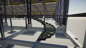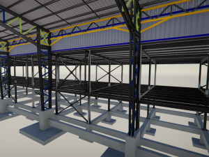 The project consists of lightweight truss type elements with tubular sections for columns and beams, providing a cost efficient solution.