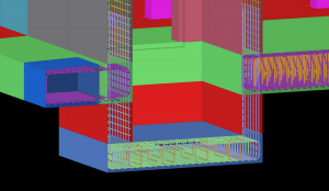 Zgłoszony do konkursu model stanowi część monolitycznej konstrukcji obiektu. Do tej pory nasz zespół zamodelował około 25 tys. m3 betonu (poprzez konwersję elementów podkładu referencyjnego w obiekty natywne Tekli), 3,7 tys. ton zbrojenia oraz wygenerował 3,5 tys. plików IFC, a to jeszcze nie koniec…