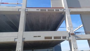 De volledige prefab bovenbouw, gemodelleerd met een LOD400-450, werd in Tekla uitgewerkt. De strakke planning genoodzaakte ons om in Tekla met 5 modelleurs op hetzelfde ogenblik te werken. Door middel van Tekla Model Sharing werd dit mogelijk gemaakt. Uit dit model werden montageplannen en productie-tekeningen geëxtraheerd voor gebruik in onze productie-site Van Maercke NV. Op basis van o.a. PXML’s, Unitechniks en BBS-bestanden werden productieplanning, nacalculatie en facturatie opgemaakt. De 3D-modellen konden op zowel kantoor als op de werf geraadpleegd worden aan de hand van Trimble Connect.