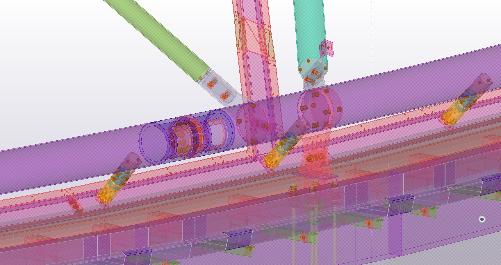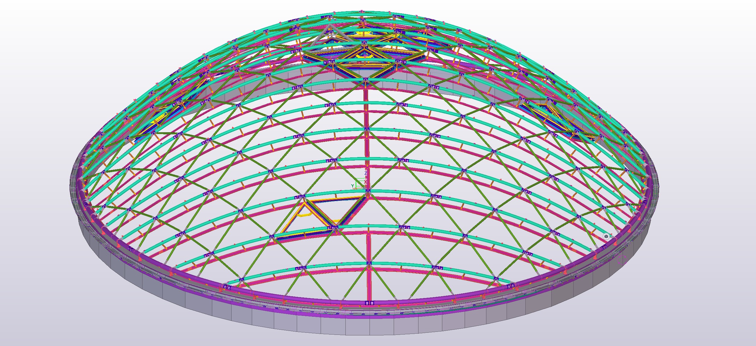 In the project, a key role was played by the use of Tekla Structures software, which greatly streamlined the entire process of designing, producing, and assembling the structure. Thanks to the advanced features of this tool, particularly its parametric components, it was possible to create a highly accurate 3D model of the dome, which had a significant impact on the project’s efficiency. Tekla Structures enabled full synchronization between the design and the production process, ensuring that the assembly was smooth and proceeded according to schedule.