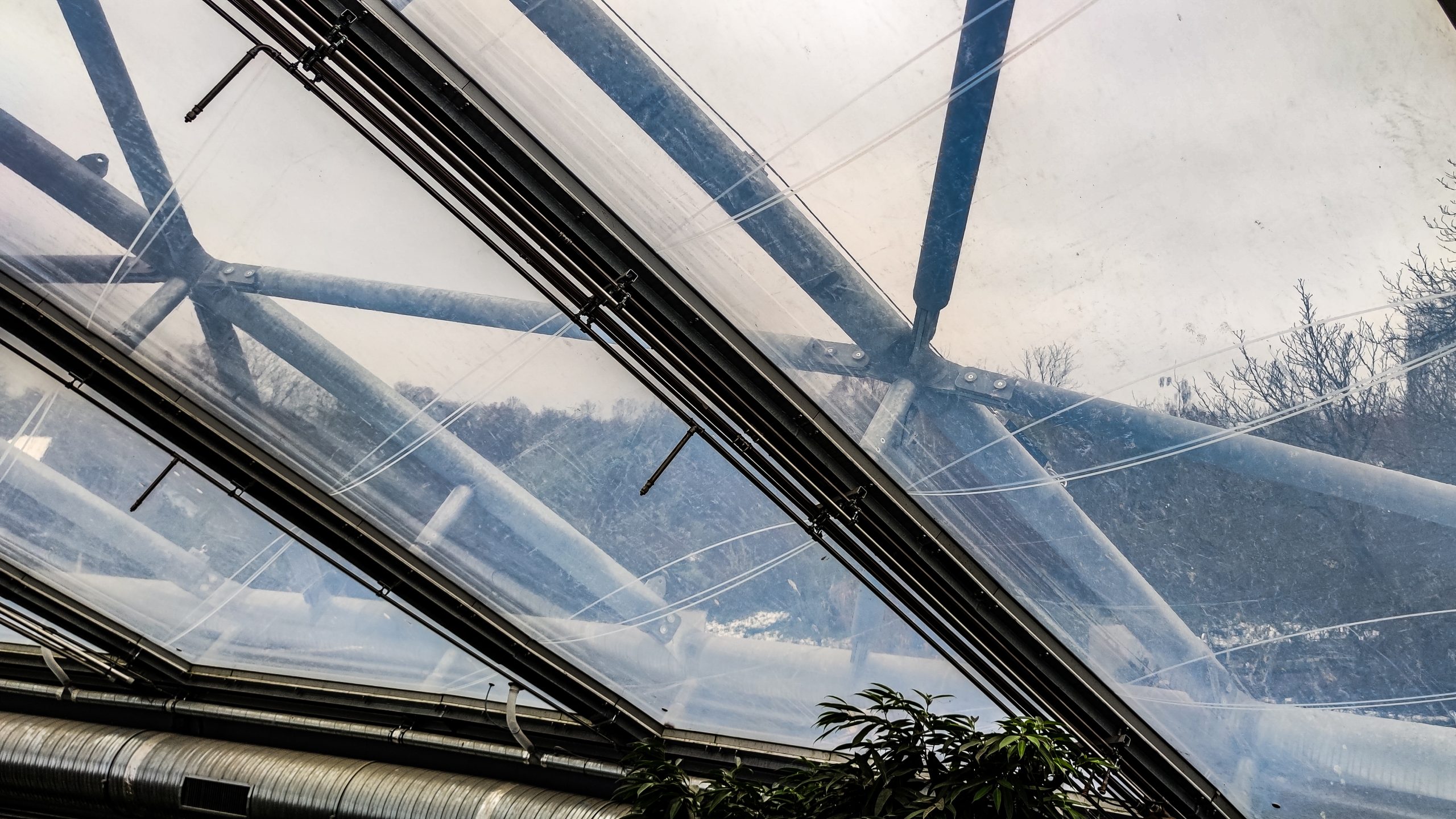 The use of ETFE foil cushions (ethylene-tetrafluoroethylene) mounted from the inside of the steel structure of the dome covering allows for excellent natural lighting, significantly reducing the need for artificial lighting. Additionally, natural light, combined with tropical vegetation and the climate inside the hall, creates a tropical atmosphere, making visitors feel as if they are in an exotic environment.