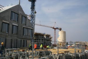 Buildings were designed in monolithic technology. The main structures are reinforced walls and columns. The above ground parts of buildings are based on transfer slabs. The facilities were laid on a foundation plates. Because of a high level of undergrounds water on the whole field of investment it was designed a net of wells to lower a level.