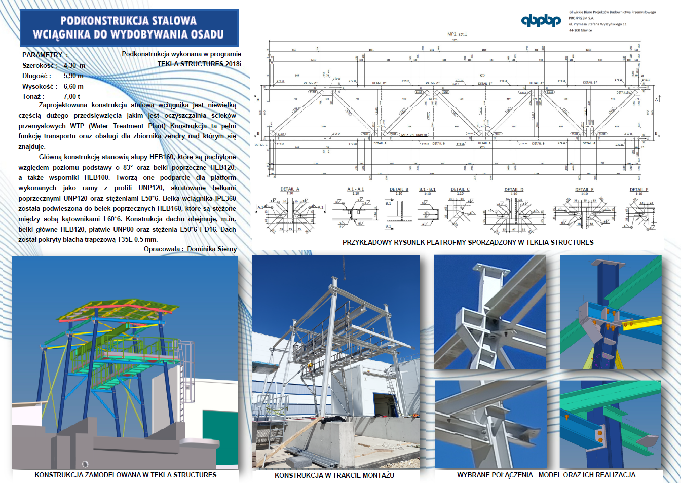 Główną konstrukcję stanowią słupy HEB160, które są pochylone