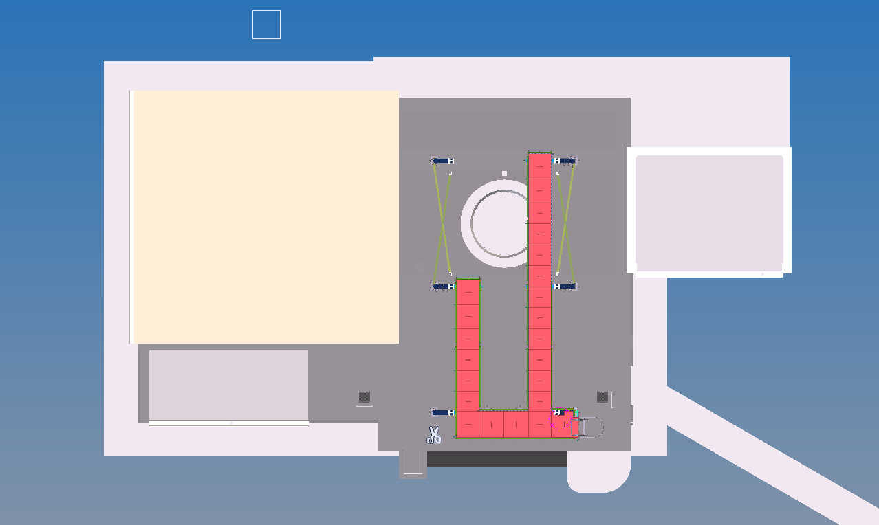 podwieszona do belek poprzecznych HEB160, które są stężone między