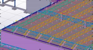 Reinforcement of production hall ‘s roof structure in Grodzisk Mazowiecki. Customization the carrying capacity of the roof structure to current standards and increased workloads. Roof area about 17,000 m2. Weight of steel construction 400 tonnes.