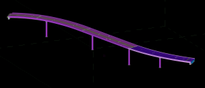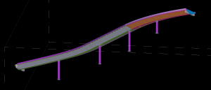 The footbridge is located above the E18 expressway. It consists of five spans with spans from 14.7 to 25.4 m. Supports are steel posts made of round pipes, anchored in reinforced concrete foundations.