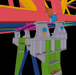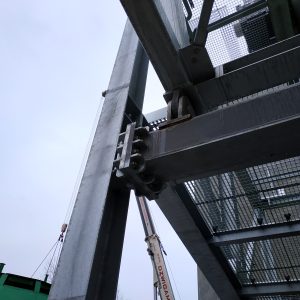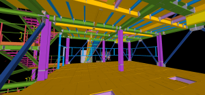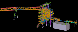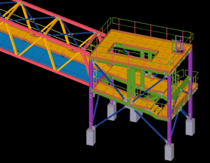 The scope includes workshop design of industrial steel structures. They are the main part of planned expansion of alternative fuels dosing installation in cement factory Górażdże Cement S.A. in Chorula. Dosing-, separation- and transfer station – these are spacial structures based on beams and columns. Conveyor bridge is a two-spanned spacial truss on the basis of simply supported beams. Pneumatic transport pipe rack consists of two structures composed of stringers and crossbars supported both on newly-designed structures and existing buldings. The designed structures are as well equipped in additional supports, working platforms, railings, steel ladders, etc. The workshop documentation consists of: material lists, single-part and assembly drawings, general arrangement drawings. In order to accelerate the process of manufacturing steel construction elements, the .stp and .nc files were created and delivered to the workshop. They are useful for automatic production lines based on CNC machines, which cut and drill steel elements of main construction as well as circular hollow sections of handrails.