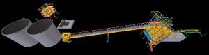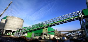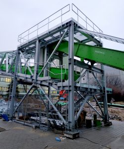 Stacja rozładunku, stacja separacji, stacja przesypowa, most przenośnikowy wraz z podporą, stacja dozowania, estakada rurociągów transportu pneumatycznego, podpory przenośników transportujących.