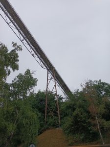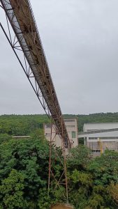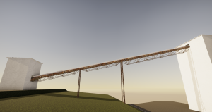 The model was created as a visual basis for the project assessing the condition of the existing bridge structure under the supervision of Allcons Industry s.r.o. the brigde serves as a supporting structure for a conveyor belt system, which trasports material (limestone) from the lower transfer station PS3 to the upper station UKV. It consist of three truss spatial structures – bridge A, B and C. At the ends of the outer parts the brigdes are supported by the transfer stations and in the middle they are supported by pivoting columns. The conveyor belt is hinged to the crossbeams and is approachable from a servise footbrigde. The total lenght of the structure is approx. 108.5 meters with a plan distance between the outer supports of about 102 meters and a superelevation of 23 meters.
