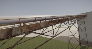 Model byl vytvořen jako vizuální podklad pro projekt posouzení stavu stávající konstrukce mostu pod vedením firmy ALLCONS Industry s.r.o. Most slouží jako podpůrná konstrukce dopravníkového pásu, jehož funkce je přemístění materiálu (vápence) ze spodní přesypné stanice PS3 do horní stanice UKV. Skládá se ze tří příhradových prostorových konstrukcí – most A, B a C. Na koncích vnějších částí jsou mosty uloženy na objekty přesypných stanic a uprostřed jsou uloženy na kyvné stojky. Samotný dopravníkový pás je uložen kloubově na příčníky příhradových mostů a je přístupný z obslužné lávky kryté roštem. Celková délka konstrukce je cca 108,5 m s půdorysnou vzdáleností krajních podpor cca 102 m a převýšením 23 m.