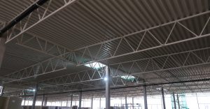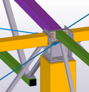 Workshop project of the steel structure of the industrial hall in Biskupice Podgórne, near Wrocław. The hall is part of the complex of the largest lithium-ion battery factory for electric cars in Europe, produced by LG CHEM. The designed hall is T-shaped with overall dimensions of 102.2×106.9m and height of 7.4m. It was made in a mixed structure, prefabricated columns and a steel flat roof structure, which consists of trusses and girders supported on reinforced concrete columns. The hall has an area of over 9,000 m2.