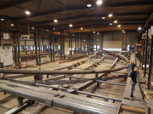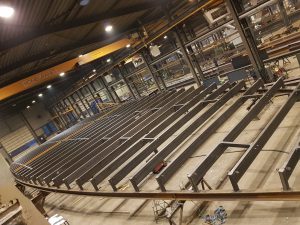 For example, the round floors of the main building are executed in cantilevered steel plate beams provided with a Comflor 210 floor. To work as efficiently as possible, the Comflor floors have been taken into account in the Tekla model. The round shapes and protruding parts are being applied in the factory. This is to assure the quality of the execution.