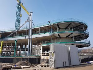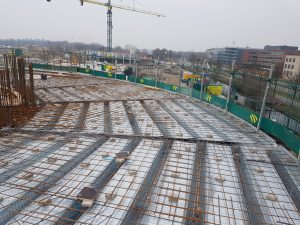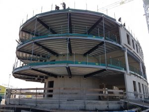 Zo zijn de ronde vloeren van het hoofdgebouw uitgevoerd in uitkragende stalen plaatliggers voorzien van een Comflor 210 vloer. Om zo efficiënt mogelijk te werken zijn de Comflor vloeren meegenomen in het Telka model. De ronde vormen en sparingen zijn in de fabriek aangebracht. Dit om de kwaliteit in de uitvoering te waarborgen.