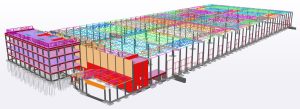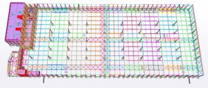 Projekt wykonawczy i warsztatowy konstrukcji żelbetowych i stalowych dla nowej siedziby firmy MIRJAN24 w Mroczeniu. W skład kompleksu wchodzi kilka budynków, z czego najistotniejszymi są biurowiec oraz hala magazynowo – produkcyjna.