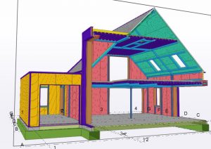 This project consist a house built from a steel construction lined with sandwich panels. It was an experiment to include all cladding with in the tekla project.
