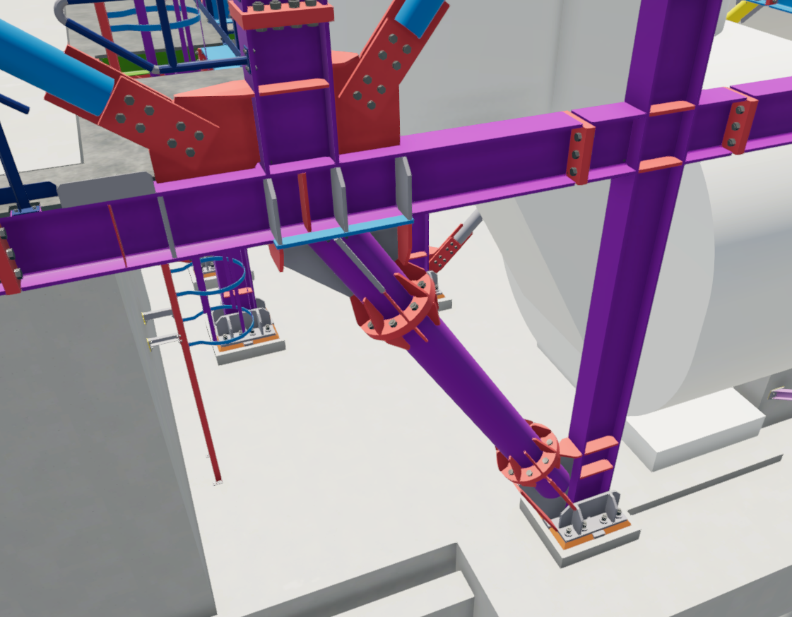 For the 3D modeling and design of the industrial steel structures—from concept design through construction plans and workshop drawings—the Tekla Structures software was used.