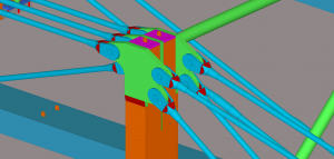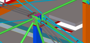 Předmětem projektu je superkonstrukce nového objektu Trimaran v Praze na Pankráci. Jedná se o tři trojice příhradových vazníků uložených na středním traktu jako prosté nosníky, na jejichž převislých koncích je na jedné straně zavěšen čtyřpatrový železobetonový skelet nad konferenčním sálem a na straně druhé jako protiváha třípatrová administrativní část budovy. Příhradové vazníky mají truhlíkové dolní pasy a sloupy. Diagonály a horní pas jsou tvořeny dvojicemi resp. trojicemi předpjatých konstrukčních táhel Macalloy 520 o celkovém počtu 257 ks. Celková hmotnost příhradových vazníků činí cca 704 tun, z toho vlastní OK je 582 tun, táhla Macalloy pak 122 tun, délka vazníků je 44 m, výška cca 8 m.