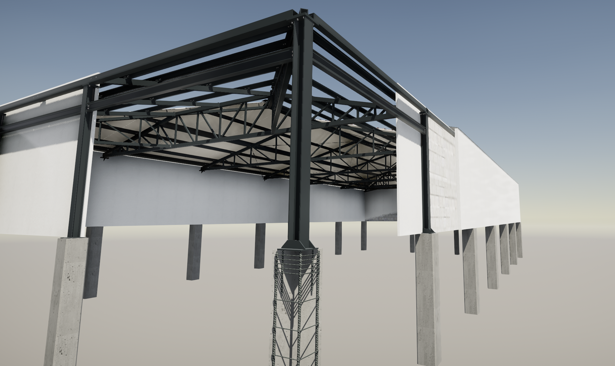 Estructura metálica en perfiles H sobre estructura de hormigón.