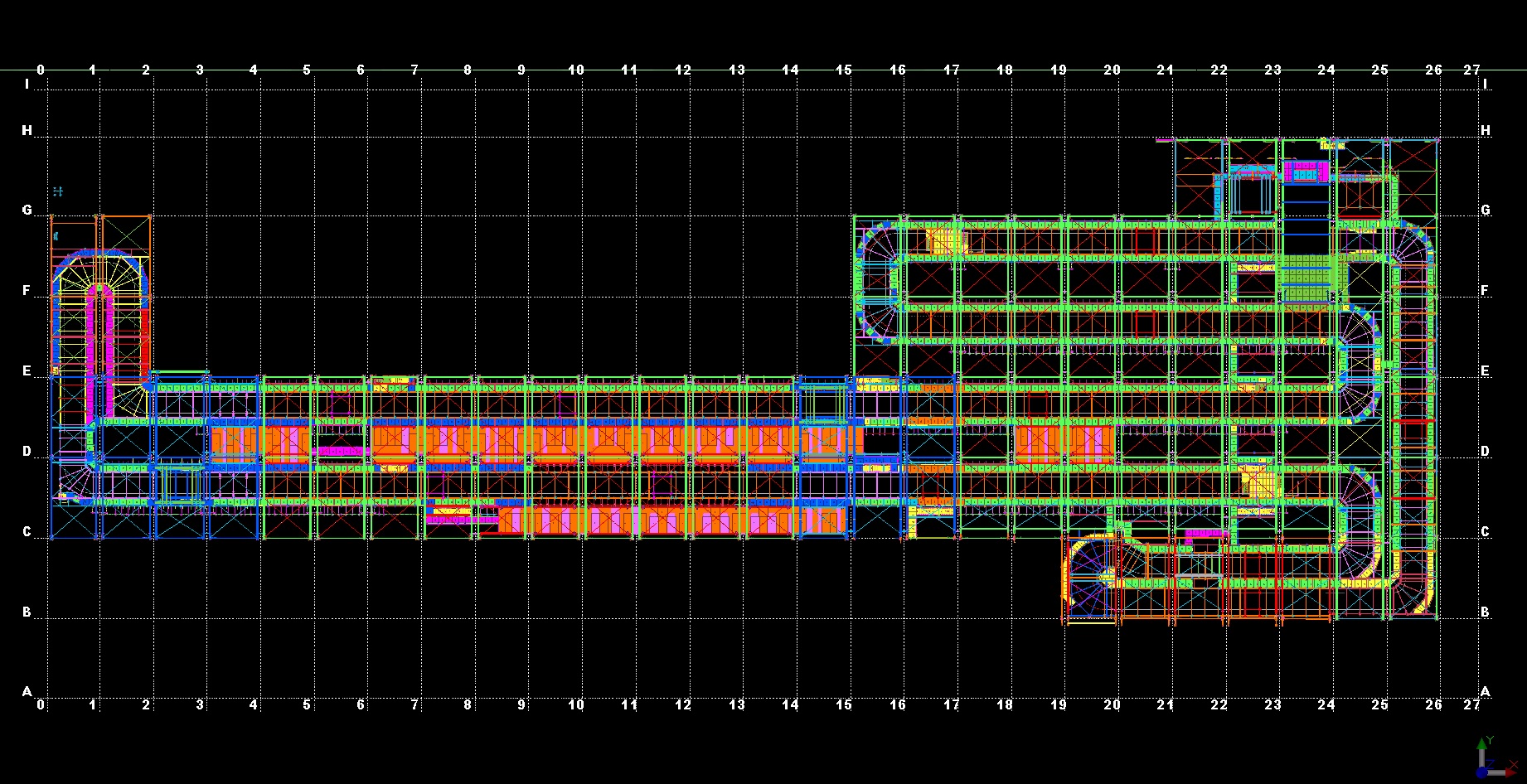 Konstrukcja wsporcza została zaprojektowana jako konstrukcja ramowa, podparta na podciągach stropu betonowego na poziomie ok. 8 metrów. Do konstrukcji został podwieszony tor EHB wraz z niezbędnymi zawieszkami oraz przejściami, podestami pod instalacje. Całość konstrukcji stalowej waży 1503 tony.