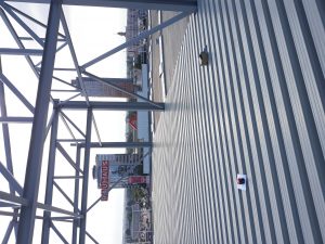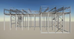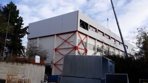 The construction of the roof is made of lattice trusses or rolled profiles with trapezoidal sheet metal roofing. The rigidity of the roof structure is ensured by means of lattice braces in the roof plane (in the longitudinal and transverse direction). The roof trusses are designed so that it is possible to place the HVAC unit and cooling technology above the new roof plane, including the noise barrier, by means of replacements and additional construction.