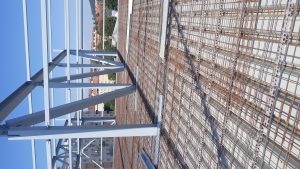 The superstructure of the upper floor is made as a steel skeletal structure with circumferential columns made of rolled profiles HEA and HEB, which are anchored to transverse steel dies or. into existing perimeter concrete columns.