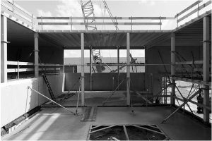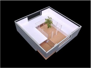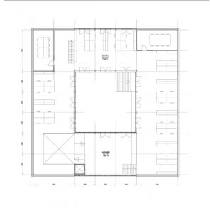 The footprint is a perfect square in which all rooms are centered around a square patio, the physical center of the organization. Here the staff meet in a casual manner, interested people and potential buyers are familiarized with the Big Green Egg. The spaces around the patio climb up, as it were, in a spiral shape. From the entrance hall at ground level a staircase goes up to a half level higher where a fully equipped kitchen opens onto the patio. This is the place where exceptional barbecue meals are prepared which guests can enjoy, inside or outside on the patio. The next half staircase leads up to the office floor that runs around the patio. On this floor, each workplace has a direct view of the patio and also a physical relationship via ‘French windows’. From this level, an outside staircase provides a short cut to the patio.