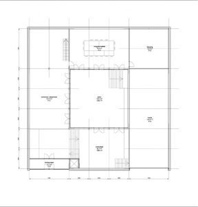 In the ring on the ground floor, the showroom is located to the left of the entrance hall, with, in its extension, a library of cookbooks, which in the future will house a collection that has no equal. This space then turns into a meeting room. The remaining part of the ground floor is occupied by a shed and a storage room.