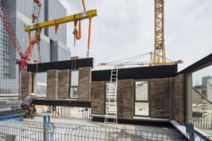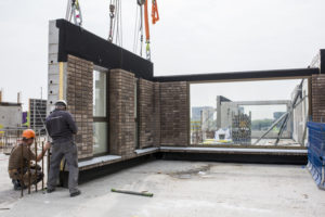 Het project bestaat uit 2 woontorens op een onderbouw met kelder. De parkeerkelder is reeds in gebruik sinds april 2016. De torens worden eind 2017 opgeleverd. Wij hebben de gevels uitgewerkt in prefab betonnen sandwichelementen. Deze elementen zijn maximaal 19 ton zwaar en worden compleet uitgevoerd; dus naast het dragend betonnen binnenblad ook de isolatie, stenen, kozijnen met glas en elektra. Zie ook de 4 montage foto’s van David Rozemeyer om een goed beeld te krijgen van deze elementen.