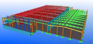 The cover is solved by deltas beams (10%) and beams I (2%)