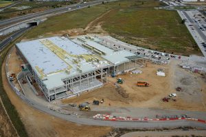 La cubierta está resuelta mediante vigas deltas (10%) y vigas I (2%)