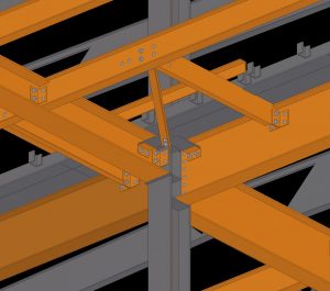 Total weight of steel is 116 tonnes. There are 294 beams, 58 columns and 24 braces. We have modelled brick shelfs around the whole of second floor and these were shop welded to the beams.