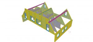 Hierbij hebben wij natuurlijk gebruik gemaakt van Tekla structures met de ontwikkelingen van Construsoft. Met deze componenten van Construsoft hebben wij gevelelementen, dakelementen en de binnenwandelementen kunnen ontwikkelen.Met name voor een snelle ontwikkeling van de kilkeper waren deze onmisbaar ook omdat dit project twee verschillende dakhoeken hanteerd. Mede doordat onze opdrachtgever dit project in Tekla ontwikkeld heeft hebben wij eventuele problemen, die anders pas op het werk naar voren waren gekomen en dus ook ter plekke hadden opgelost moeten worden, kunnen voorkomen.