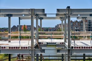 The steel was moved several hundred metres to the construction site of the new building. Steel builder Vic Obdam opted to bring the steel to Leiden, instead of bringing it to West Friesland. Project leader Rick de Keijser: „We have created a workshop there.“